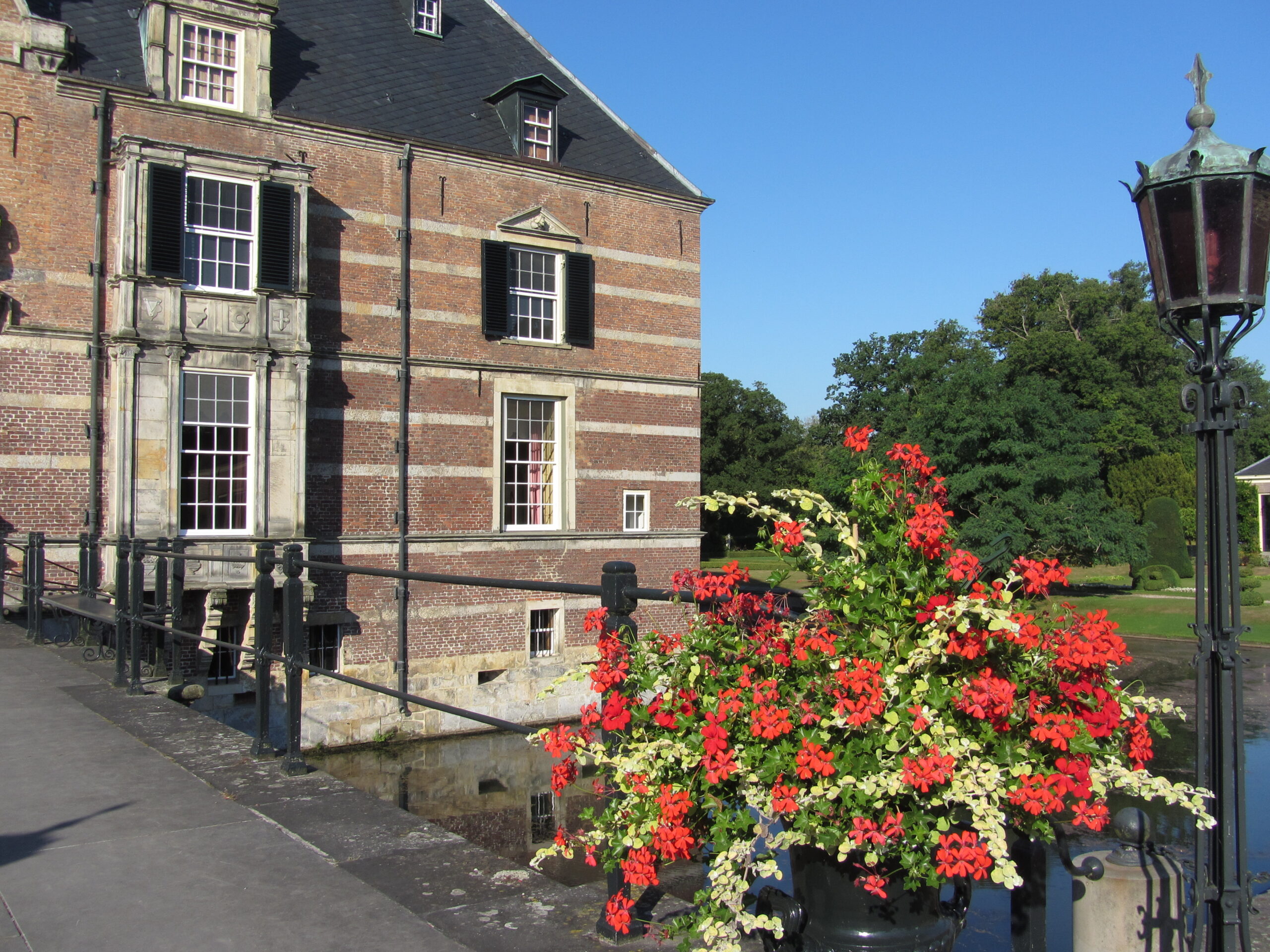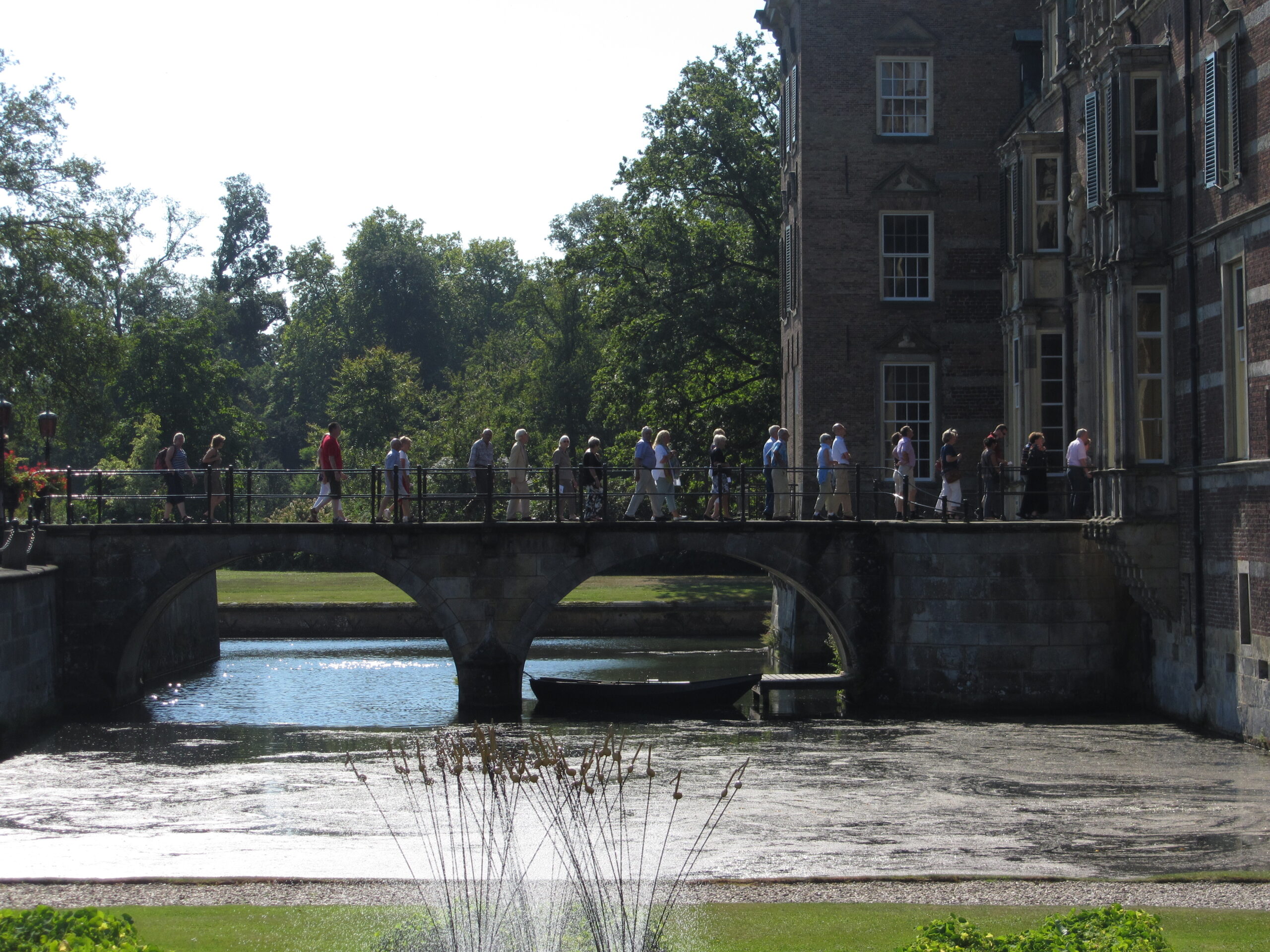Delden, vrijdag 6 September 2013. We mochten ons verheugen op 219 bezoekers voor een rondleiding door het kasteel tijdens de jaarlijkse Kasteeldag.  In 10 groepen , verdeeld over de hele dag, vonden de rondleidingen plaats.  De eerste twee groepen startten om 10.00 uur. In tegenstelling tot vorige jaren werden de groepen echt rondgeleid door het kasteel in plaats van het volgen van een vaste route met in elke kamer een vrijwilliger van Twickel, die iets kon vertellen wat er zoal te zien was. Doordat de rondleider nu meeliep kwamen de deelnemers veel meer te weten over de geschiedenis van Twickel en zijn vroegere bewoners. En natuurlijk ook nog de anekdotes. Ook kwamen we in vertrekken, die voorheen niet te bezichtigen waren en omdat er vrijwel niets was met koord was afgezet konden we veel dichter bij de prachtige objecten komen.