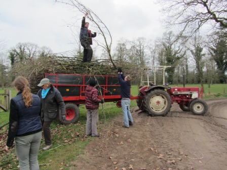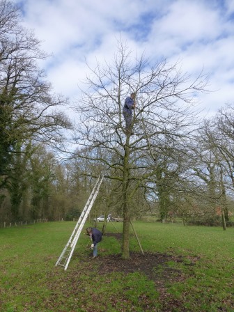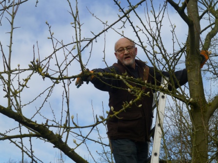 We werden deskundig geïnstrueerd door Jos Huis in het Veld, een oud hovenier met als specialiteit oude fruitbomen. De ideale periode om te snoeien was eigenlijk vier weken eerder, maar Jan had speciaal gewacht op de Vrienden van Twickel om op 22 maart, niet geheel toevallig ook de vrijwilligers dag van NLdoet 2014, te komen snoeien. Veel handen maken licht werk. Jan Herbrink was ons zeer erkentelijk voor het mooie werk en het goede resultaat. Het snoeihout werd per tractor met kiepkar afgevoerd naar de plek waar het paasvuur in Oele gaat plaatsvinden.