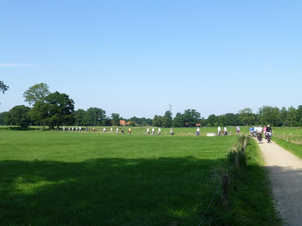 Op zaterdag 22 -en zondag 23 augustus 2015 maakten wij met 45 vrienden een ca. 30 km. lange fietstocht langs de markante en historische punten in relatie tot de zoutwinning in de omgeving van Delden en Hengelo. Baron van Heeckeren van Wassenaer, heer van Twickel, liet in 1886 boringen verrichten naar drinkwater. Men vond weliswaar water maar helaas was het zouthoudend dus niet geschikt voor consumptie. Deze ontdekking heeft er uiteindelijk toe geleid dat in 1918 in Boekelo een zoutfabriek werd gesticht, die later naar Hengelo werd  verplaatst.  De tocht startte op het landgoed Twickel in verband met de bovengenoemde ontdekking. Onder leiding van de heer Helmig Kleerebezem maakten we een fietstocht door het mooie Twentse land.  Halverwege,  in één van de oude boortorens, werd een inleiding gehouden door de manager van het boorterrein van Akzonobel. Er bevindt zich onder heel Oost-Nederland een laag van ca 50 meter zout. In Twente zit deze laag op een makkelijke winbare diepte van ca 400 m. Het zout is afkomstig uit een ingedampte zee, die ca 200 miljoen jaar geleden Oost Nederland bedekte. Sinds 1918 zijn er al meer dan 500 boringen verricht en zijn vele tientallen miljoenen zout gewonnen. De dagen waren bijzonder geslaagd mede door de boeiende en humoristische verhalen van meesterverteller Helmig Kleerebezem die tientallen jaren bij de KNZ werkte en alles weet over het Zout in onze bodem.  Maar ook het bijzonder mooie weer droeg bij tot het slagen van beide dagen.