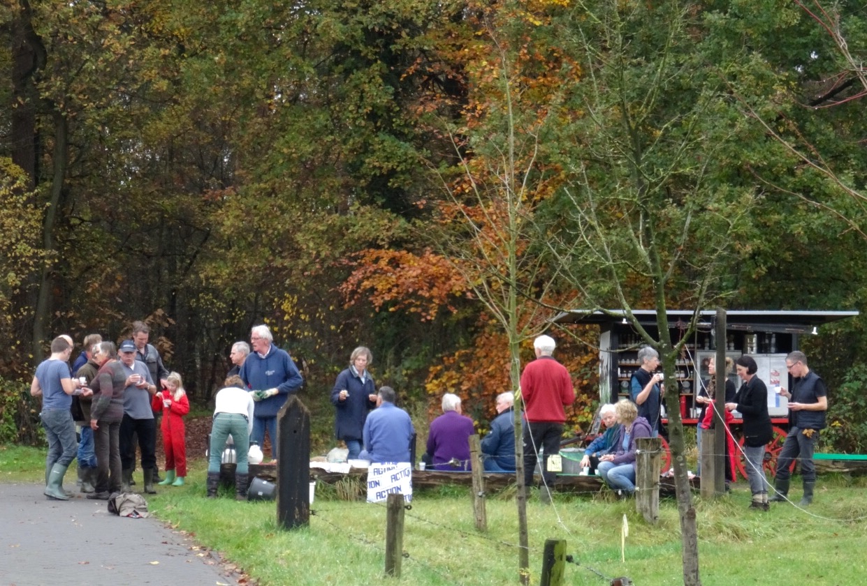 Op zaterdag 7 november vond de natuurwerkochtend plaats op het Bokdammerveld. Ruim 20 Vrienden van Twickel staken de handen uit de mouwen om dit kwetsbare stukje natuur te ontdoen van jong gewas dat er niet hoort. Vanuit de activiteiten commissie was gezorgd voor koffie, iets lekkers en broodjes. Aan het einde van de ochtend was het duidelijk zichtbaar dat er hard gewerkt was.