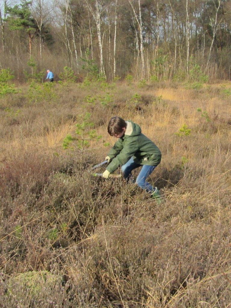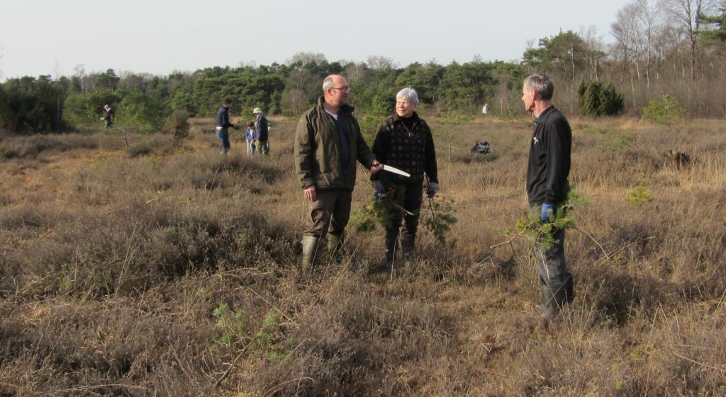 21  harde werkers deden mee met de natuurwerkochtend in het  ‘Vorgersveld’ (bij de Sluitersdijk tussen Delden en Beckum). Het natte heidegebied werd opgeschoond van jong opschot.
