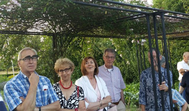 In de moestuin van Twickel leven ook vele bijen. Imker Hennie Keizer toonde hun onderkomens en liet het proces ‘van raat tot honing’ zien. Ondertussen voorzag tuinman Gerrit Molenkamp de bezoekers van meer informatie, evenals vrijwilliger Wim Olde Beuvink. De deelnemers kregen na afloop bijensteek -een heerlijke koek met amandeltjes- dat de leden van de Activiteitencommissie hadden gebakken. Daarna togen ‘de Vrienden’ weer huiswaarts. (bewerkt naar een artikel van Hiska Bakker)