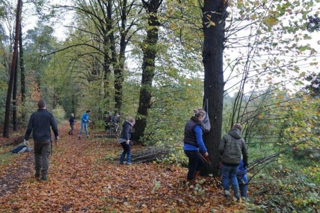 Lindes snoeien tijdens de natuurwerkochtend op 2 november 2019. 34 Vrienden, waaronder de dames van de Ladies Circle Twente met kinderen, hebben een lindelaan gesnoeid in het bos bij erve Asbroek ten oosten van Beckum. Door dit prachtige coulisselandschap met zeer oude beuken en eiken stroomt ook de Hagmolenbeek, waarvan de oevers door Twickel weer…
